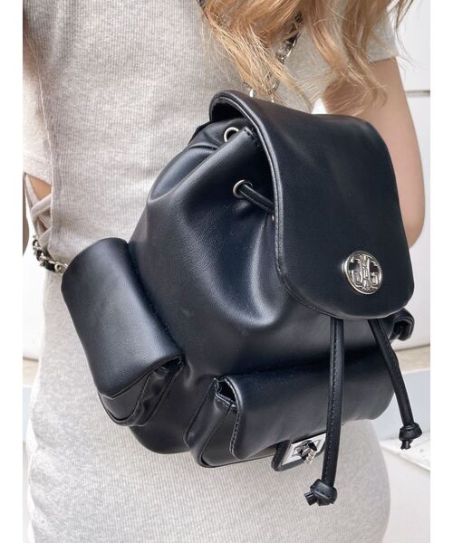 商品コメント:流行のポケットが沢山ついたデザインをミニリュックにしました。 カジュアルなデザインですがチェーン使いやモチーフ金具で女性らしさを出しています。 コーデ:GYDAの様々なコーデに合います。