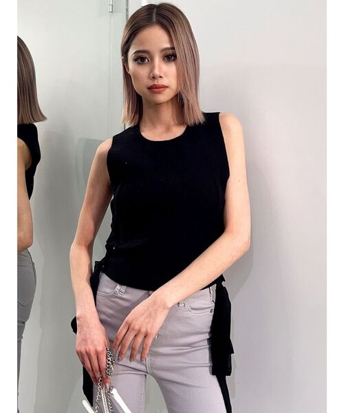 商品コメント:両サイドに大胆に施された異素材のレースアップが女性らしい印象のニットトップスです。 裾から垂れ下がるリボンがオシャレでエレガントな雰囲気になります。 脇部分はマチが付いているので、下着が見えにくいデザインになっているのも嬉しいポイントです。 一枚でオシャレ度の高いスタイリングになる一枚です。 コーデ:スキニーパンツと合わせていただくのがバランスよくオススメです。