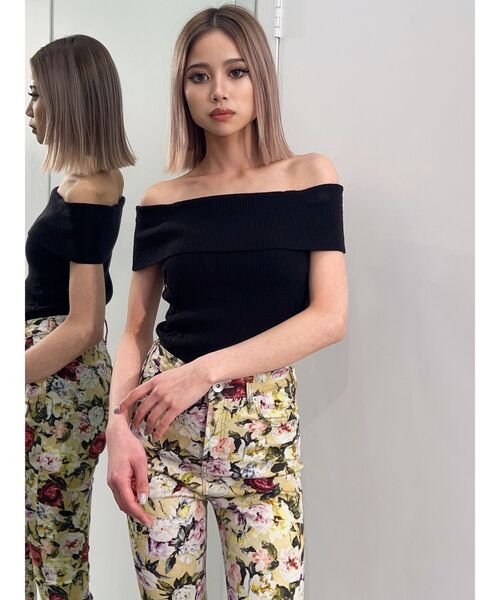 商品コメント:収縮性抜群の編地で着心地もよいデザインニットトップスです。 折り返したオフショルのデザインが二の腕カバーになります。 柔らかいニット素材なので締め付け感もなく楽ちんに着用いただけます。 両サイドに施されたレースアップのラインが、スタイルアップになり、一枚でオシャレ度が上がる一枚です。 コーデ:ワイドデニムパンツと合わせていただくと、ヘルシーな印象のスタイリングになりオススメです。