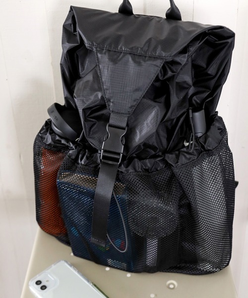 ーーー背バックに通しファスナー付きで、フロントに3層のメッシュポケットあり。サイドのポケットには折り畳み傘やペットボトルが入れられます。上部絞り+フラップ付きで安心。ショルダーハーネス上にジップポケットがついており携帯や鍵などの貴重品が入れられます。撥水加工仕様でハーネスにクッション入りなので肩あたりが良く、コーデュラナイロンリップストップ生地を使用し、丈夫ながら素材ならではの薄さが軽やかな印象を与え、重たくならない見た目に仕上がっています。ーーー-------------------------------------≪お買い物をよりお楽しみいただくために≫◆商品のお気に入り登録(ハートマークをクリック)完売カラーの再入荷通知や、完売間近の通知、セールの通知も受けることができます。◆ブランドのお気に入り登録新商品や再入荷など、いち早くブランドのお得な情報を受け取ることができます。-------------------------------------