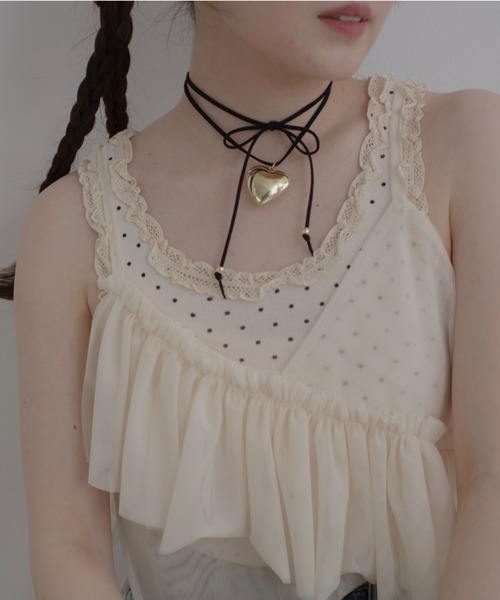 -フェイクスウェードチョーカー- 大ぶりのハートモチーフと 首にぐるりと巻き付けられるスウェード調の リボンがトレンド感たっぷりのチョーカー。 デコルテラインがすっきりとした春夏アイテムと相性の良い レースアップの首元リボンは ガーリーにリボン結びに、ちょっぴりカジュアルに肩結びなど 気分に合わせて結び方を変えられる長さが魅力。 ぷくっと存在感のあるチャームが コーディネートのポイントに。 [ select item ] JUMELLEらしい、ガーリーカジュアルなスタイルに ぴったりなアイテムを厳選してセレクト。 つけ心地やシルエットまでcheckし、セレクトしています。 -キーワード- ネックレス チョーカー スウェード ベロア ベルベット リボン ハート チャーム ぷっくりハート ゴールド 長さ調整可能 大ぶり カジュアル ガーリー