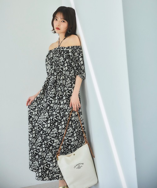 【田中芽衣さん着用】大人な雰囲気を叶えてくれる、落ち着いたカラーのプリントワンピースです。肩まわりにゴムが入っているので、パフ袖でも肩を下げてオフショルダーでも着られるデザイン。襟ぐりまわりはスッキリ開けて抜け感を出しつつ、ホルターネックのおかげでオフショルスタイルでも安心の着用感です。後ろファスナーで着脱できる仕様、便利なポケット付きです。**********************透け感:なし裏地:あり伸縮性:なし光沢感:なし生地の厚さ:普通**********************●取り扱いについては、商品についている品質表示でご確認ください。●撮影はサンプル商品で行っている為、仕様とサイズが異なる場合がございます。●スタジオ及び屋外で撮影した着用画像は、光の当たり具合やご覧のモニターによって色味が違って見える場合があります。予めご了承ください。●生産時期により色・素材・サイズ感など多少異なる場合がございます。予めご了承ください。≪お買い物をよりお楽しみいただくために≫・「商品のお気に入り登録」再入荷通知や、ラストの通知、セール通知も受け取ることができます。・「ブランドのお気に入り登録」新商品や再入荷など、お得な情報を受け取ることができます。