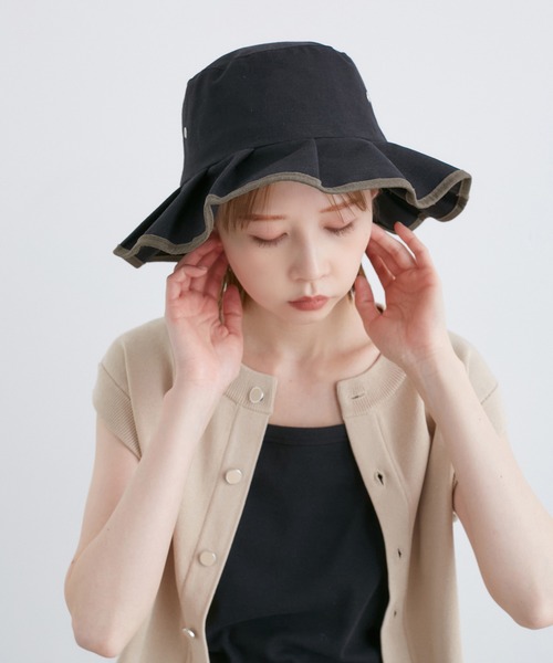 日差しを遮ってクラシカルに決める。プリーツデザインが目を惹くハット。【デザイン・シルエット】・プリーツデザインのツバがエレガントなリネン混ハット。・ツバの縁には配色のパイピングをアクセントでプラス。【カラー】・ブラック(01):ブラック×モカパイピング・キナリ(16):アイボリー×ライトベージュパイピング・ブラウン(22):ライトブラウン×ダークベージュパイピング・サックス(46):サックスグレー×アイボリーパイピング【スタイリングポイント】・ワンピーススタイルに合わせてフェミニンに取り入れて。・カジュアルなTシャツスタイルに、ワンポイントで取り入れるのもおしゃれ。※撮影時の光、お使いのモニター環境によって色の見え方が違う場合がございます。