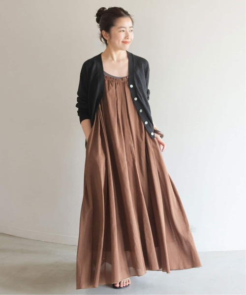 【2024SS】SLOBE IENA大好評につき《ブラック》《ブラウン》の追加生産が決定しました!※旧品番23040912421020、23040912421120、24040912408020の追加商品です。※若干の仕様変更がある場合もございます。※こちらの商品は前回よりも値段が上がっておりますが、素材高騰のためによるものです。予めご了承くださいませ。柔らかい風合いのコットンガーゼの素材を使用したワンピース。たっぷり入ったギャザーが風をはらみ、軽やかな雰囲気でお召しいただけます。ギャザー端のフリルと、バックスタイルのリボンがポイントに◎タンクトップと合わせたヘルシーな着こなしからTシャツと合わせたカジュアルアップした着こなしまで、様々なスタイリングが楽しめる1着です。※こちらの商品は、WEB限定商品です。店舗へは入荷致しませんのでお問い合わせの際にはご注意ください。※こちらの商品はカラーによってアテンションが異なります。《アテンション》色あせ:ブラウンのみ**********************透け感:なし(ペチコート付属)裏地:なし伸縮性:なし光沢感:なし生地の厚さ:薄手**********************【スタッフ着用コメント】《スタッフ名:Yuka》年齢:20代後半/身長:172cm/体型:細身/普段サイズ:M~L/着用サイズ:フリーサイズ感:身体のラインを拾わず楽に着られる。アジャスターで着丈が調節可能です。素材感:さらっとしていて肌離れの良い素材。着心地:動きが自然に出て軽やか。夏でも涼しく快適に過ごせそうです。**********************※取り扱いについては、商品についている品質表示でご確認ください。こちらの商品は、SLOBE IENAでの取り扱いになります。直接店舗へお問い合わせの際はSLOBE IENA店舗へお願い致します。※照明の関係により、実際よりも色味が違って見える場合があります。またパソコン・スマートフォンなどの環境により、若干製品と画像のカラーが異なる場合もございます。予めご了承ください。※商品の色味は、商品アップ画像をご参照ください。本体:手洗い可能, ペチコート:手洗い可能