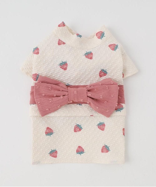 ポコポコとアイボリー色の優しいカラーリングの生地に、いちごの総柄プリントが施された可愛らしい浴衣。 オリジナルで描かれた柄テキスタイルなので、monchériだけにしかない一着です。 帯もドット感のある生地に、いちご柄と色を合わせたピンク色でまとめて、可愛い愛犬ちゃんにぴったりな配色◎ 前あきはマジックテープ仕様。 お腹周りもマジックテープで2段階サイズ調節ができる為、愛犬ちゃんに合わせて着用頂けます。 ワンタッチで着脱できる着やすい仕様です。 生地全体に冷感加工も施されているため、暑い季節にはピッタリの一着です。 【接触冷感】 こちらの商品は生地に接触冷感加工を施してあります。 触れるたびにひんやりと涼しい感覚があり、暑い夏も快適に。 接触冷感のお洋服を着せることで熱中症対策効果も期待できます。 ■生地仕様 生地の厚さ:普通 伸縮性:あり 目安体重:XS ~1kg / S ~2kg / M ~4kg / L ~6kg / XL ~8kg / DM ~5kg 2Mサイズ=DMサイズ ★『お気に入り登録』でお得な情報をいち早くGET★ ・「商品のお気に入り登録」で再入荷通知や、ラスト1点の通知、セール通知も受け取ることができます。 ・「ブランドのお気に入り登録」で新商品や再入荷など、お得な情報を受け取ることができます! ※冷感加工について※ 冷感加工は永久的な物ではなく、着用やお洗濯を繰り返すことにより 効果は低下しますのでご了承ください。 ※こちらの商品は冷感加工を施しておりますが、生地の特性上、肌感覚では冷たさを感じづらいこともございます。 密度のある生地を使用しているため、瞬間的な冷感性はありますが空気が抜けにくく、蒸し暑さを感じることもあります。 予めご了承ください。