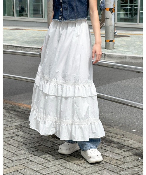 ーーー ふんわりとしたレースのガーリーなロングスカート ーーー 【POINT】 ・シンプルデザインでスタイリングに取り入れやすいアイテム◎ ・裾や切り替え部分のレースがポイントのふんわりスカート。 ・ウエストゴムのため、様々なウエストサイズの方に着用いただけます。 【STYLING】 ・一枚ではもちろん、デニムパンツやスウェットパンツの上にレイヤードするのもおすすめ ・合わせ方次第で幅広く着れる万能アイテム ・可愛らしいブラウスやカーディガン×バレエシューズを合わせて甘めガーリーに ・クロップ丈のパーカー×スニーカーでカジュアルにも ・・・・・・・・・・・・・・・・・・・・・・ 透け感:やや透ける(ホワイト10で計測) 伸縮性:なし 生地の厚さ:普通 裏地:あり 季節:春夏秋冬 ・・・・・・・・・・・・・・・・・・・・・・ <3.3 Field Trip/3.3フィールドトリップ> ブランド名にある3.3はその名の通り「3.3平方メートル」を意味し、3.3 Field Tripと一緒なら、いつでもどこでも 快適にリラックスできるという意味が込められています。「We love Brooklyn」をモットーに、 実用的でありながらスタイリッシュなルックとナチュラルさを追求したALANDのプライベートブランドです。 ▼取扱いSHOP:ALAND ファッション、雑貨、コスメなどさまざまなブランドを取り扱う韓国発のストリートセレクトショップ。 2020年秋、待望の日本上陸を遂げたALANDは、韓国の新進デザイナーとサブカルチャーを発掘し、 その価値を最も魅力的な方法でマーケットに発信する唯一のライフスタイル型ストリートセレクトショップです。 【お気に入り登録がオススメ】 ・商品のお気に入り登録 「在庫残りわずか」「完売カラーの再入荷」「セール」の通知を一足早く受け取ることができます。気になった商品はまずお気に入り登録へ! ・ブランドのお気に入り登録 お気に入り登録したブランドの新作や再入荷等、ブランドのお得な情報を定期的に受け取る事が出来ます。 ※屋外の光や照明の当たり具合で、実際の商品の色味とカラー別画像の色味に違いが発生する場合がございます。 商品の色味はスタジオ撮影の詳細画像にてご確認ください。 ※サンプルにて撮影をしておりますので、実際の商品とは仕様や加工・サイズ等が若干異なる場合がございます。