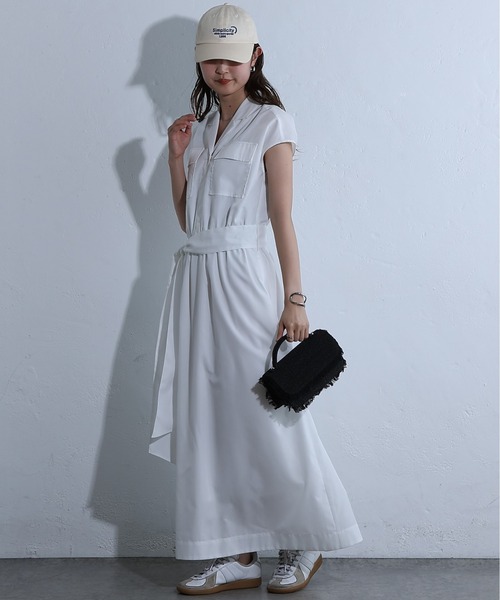 【一枚で決まる!開襟シャツワンピース】 フロント部分は比翼仕立てですっきりとした印象の開襟シャツワンピースです。 ウエスト切替は高めに設定し、リボンベルトをキュッと絞ればスタイルアップ効果も◎ リボンベルトは取り外し可能で総ゴム仕様のため、着心地抜群です。 スカート部分には裏地がついております。 【商品ポイント】 ・スカート部分は裏地つき ・両胸にポケット付き ・ウエストゴム入り ・ウエストリボンは取り外し可能 ---------------------------------------------------- ■商品特徴 洗濯方法:洗濯機洗い可(弱) 裏地 :スカート部分のみ裏地つき 透け感 :なし 伸縮性 :なし 光沢感 :なし 生地の厚さ:ふつう ---------------------------------------------------- ■素材 表地: ポリエステル100% 裏地: ポリエステル100% ---------------------------------------------------- ※着用、お取り扱いの際は、商品についている品質表示とアテンションタグを必ずご確認下さい。 ※商品タグに記載されている商品名がWEBでの表記名と異なる場合があります。 ※画像の商品はサンプルです。実際の商品と仕様、加工、サイズが若干異なる場合がございます。 ※照明の関係により、実際よりもやや明るく見える場合がございます。またパソコンなどの環境により、若干製品と画像のカラーが異なる場合もございます。予めご了承くださいませ。 【お気に入り登録】してお得な情報をCHECK!! ・「商品のお気に入り登録」で再入荷通知や、ラストの通知、セール通知も受け取ることができます。 ・「ブランドのお気に入り登録」で新商品や再入荷など、お得な情報を受け取ることができます。