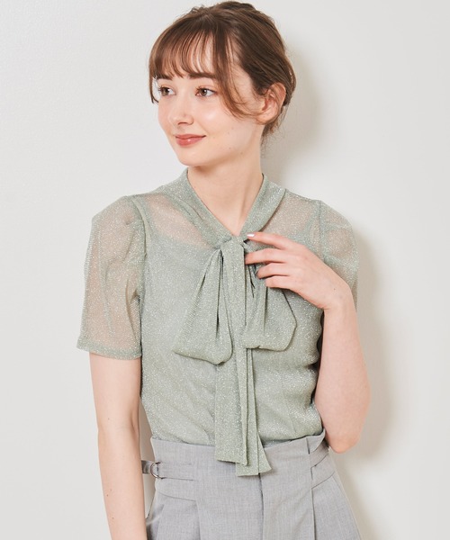 ◆◇◆2024 Spring/SummerCollection◇◆◇やわらかなラメチュールのブラウス。袖のタックや衿元のリボンなど1枚でもシンプルすぎないデザインとなっています前リボンや後ろリボンなど合わせるアイテムによって変えられる、前後2WAYとして着用していただけます。インナーキャミ付きなのもうれしいポイント。・‥…━…‥・‥…━…‥・‥…━…‥・‥…━…‥・‥…36/〈本体〉着丈50.0cm、肩巾28.0cm、身巾76.0cm、裾周り76.0cm、袖丈24.5cm、袖口28.0cm、〈インナー〉着丈41.0cm、身巾80.0cm、裾周り77.0cm※サイズ表記につきましては、商品によって同サイズや同色等であっても各商品毎に誤差が生じる可能性がある為、サイズ表記はあくまでも目安としてご参照ください。※モデル着用アイテムはサンプル商品の為、実際よりサイズや色が異なる場合がございます。サイズはサイズ詳細等にてご確認下さい。※モデル着用カラーは、撮影環境の兼合いにて、実際のカラーと異なって見える場合がございます。商品カラーに関しましては、物画像をご参考ください。※取り扱いについては、商品についている品質表示でご確認ください。※商品画像はサンプルのため、色味や仕様変更がある場合がございますので予めご了承ください。※画像と柄の位置が異なる場合がございます、ご了承下さい。※撮影の照明状況やパソコンなどの環境により、若干製品と画像のカラーが異なる場合もございます。予めご了承ください。