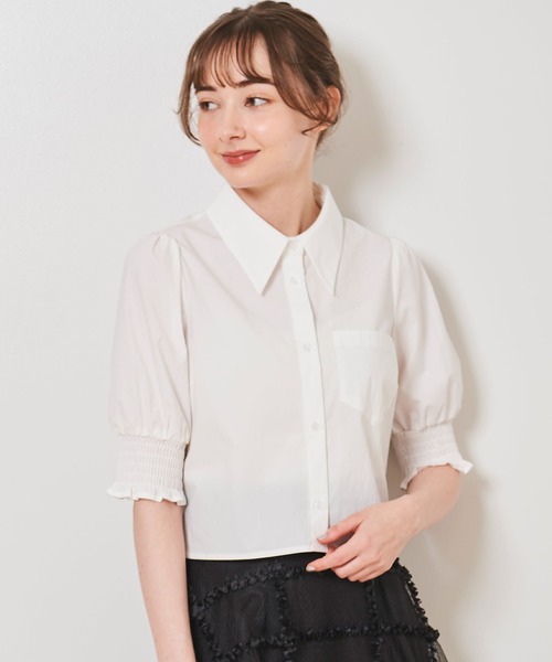 ◆◇◆2024 Spring/SummerCollection◇◆◇シャーリングの袖口がフェミニンな印象をアップグレードするトレンドのクロップド丈シャツ。リラックスなサイズ感でボトムにインしないスタイリングがウエストまわりをカバーしてくれスタイルよく見せてくれます。ボタンを開けて羽織としてもお使い頂ける3WAYの便利なアイテムです。・‥…━…‥・‥…━…‥・‥…━…‥・‥…━…‥・‥…▼サイズ36/着丈44.0cm、肩巾34.0cm、バスト94.0cm、裾周り101.0cm、袖丈35.5cm、袖周り38.3cm、袖口周り25.0cm▼ファブリック-----------------------------透け感: ややあり伸縮性: なし裏地:なし 光沢:なし生地の厚さ:やや薄手 洗濯:手洗い可-----------------------------※サイズ表記につきましては、商品によって同サイズや同色等であっても各商品毎に誤差が生じる可能性がある為、サイズ表記はあくまでも目安としてご参照ください。※モデル着用アイテムはサンプル商品の為、実際よりサイズや色が異なる場合がございます。サイズはサイズ詳細等にてご確認下さい。※モデル着用カラーは、撮影環境の兼合いにて、実際のカラーと異なって見える場合がございます。商品カラーに関しましては、物画像をご参考ください。※取り扱いについては、商品についている品質表示でご確認ください。※商品画像はサンプルのため、色味や仕様変更がある場合がございますので予めご了承ください。※画像と柄の位置が異なる場合がございます、ご了承下さい。※撮影の照明状況やパソコンなどの環境により、若干製品と画像のカラーが異なる場合もございます。予めご了承ください。