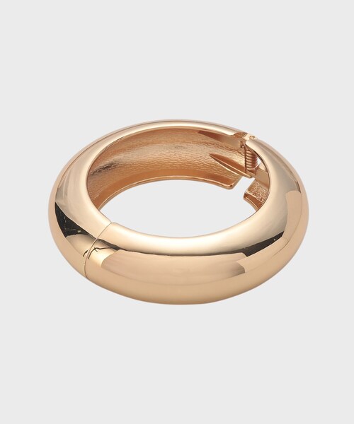 Design Point リング状になった太めのゴールドバングル。 シンプルな装いにプラスするだけで一気にモードなスタイリングが完成するアイテムです。 開閉式で着脱しやすいのがうれしいポイント。 ※照明の関係により、実際よりも色味が違って見える場合があります。また、パソコン・スマートフォンなどの環境により、若干製品と画像のカラーが異なる場合もございます。 店舗へのお問い合わせ商品番号:523-08091 ●製品寸法: 00(FREE):内周18cm 幅2.5cm 備考: