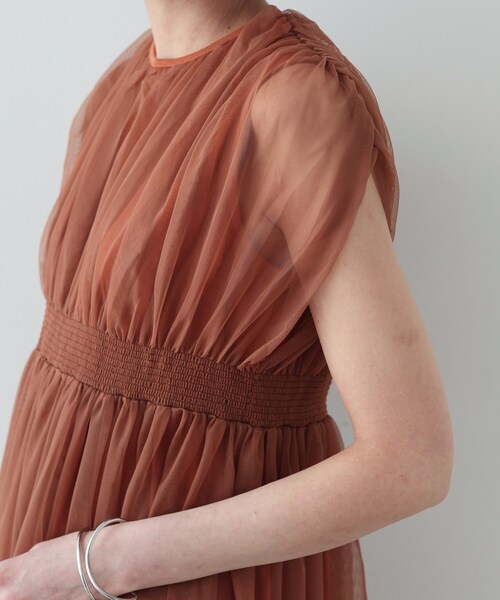 Design Pointチュール素材とカットソーを組み合わせたノースリーブトップス。前後のウエストにシャーリングデザインを入れ、程よいボリューム、華やかさを出してコーデに存在感をプラス。ゲストニーズとしても取り入れられるブラウスです。Styling Point通勤からカジュアルシーン、ゲストシーンまで着回せるトップス。デニム合わせで抜け感を出すコーデもおすすめ。Fabric Pointメッシュ類の中では目が粗いチュールですが、ソフトな風合いを持ち、柔軟性に富んでいます。ストレッチ性も良くリラクシーな素材。※照明の関係により、実際よりも色味が違って見える場合があります。また、パソコン・スマートフォンなどの環境により、若干製品と画像のカラーが異なる場合もございます。店舗へのお問い合わせ商品番号:523-88027●製品寸法:38(M):着丈68cm B80cm 肩幅52cm備考: