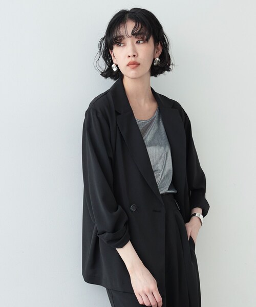 Design Point 薄手でドライタッチかつ清涼感のある梳毛ライクな素材で仕上げたジャケット。 カーディガン感覚でさらっと着用できるイージーなおつくりの、日除け対策に使えるアイテムです。 Styling Point 同素材のボトム(523-68023)とセットアップで着用すればオンタイムな着こなしに。 また、今季トレンドのIラインシルエットのワンピースの上にバサッと羽織るのもおすすめです。 ジャケットの中にTシャツ、ボトムにデニムを合わせてカジュアルダウンするのも◎。 Fabric Point ドライタッチでシアー感のある梳毛見えするポリエステル素材。 ※照明の関係により、実際よりも色味が違って見える場合があります。また、パソコン・スマートフォンなどの環境により、若干製品と画像のカラーが異なる場合もございます。 店舗へのお問い合わせ商品番号:523-48023 ●製品寸法: 36(S):着丈63cm B106cm 袖丈55cm 裄丈78cm 肩幅45cm 38(M):着丈64cm B108cm 袖丈56cm 裄丈79cm 肩幅46cm 備考: