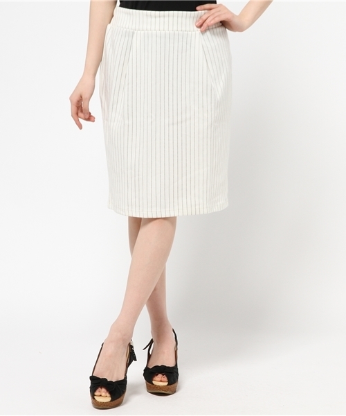 ポンチ素材のタックタイトスカートです。ウエストは平ゴムを使用し、トップスをインしてもスッキリまとまってくれます。しっかりとしたポンチの生地感がカジュアルなイメージ。スリッポンやローファーなどを合わせるのがおすすめです。