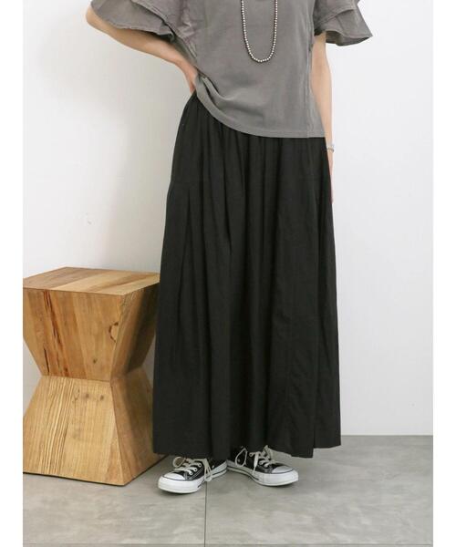 コットンビスコースの柔らかな風合いが魅力のギャザースカート。 ふんわりとしたボリューム感があり、女性らしい優しげな雰囲気を演出してくれます。 ウエスト部分はゴムギャザー仕様で心地よくフィット。快適に着用でき、愛用率も高まりそうなアイテムです。 ※商品画像は、撮影環境やお客様のご利用のPC・スマートフォンのモニター環境などにより実物と色味に差異がある場合がございます。 【その他採寸】 F ウエスト:[ゴム仕様]64cm