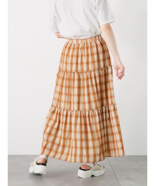 フリリーなティアードデザインが可愛らしいスカート。チェック柄と配色トリムでスタイリングもパッと華やかな印象に見せてくれます。ウエスト部分はゴム仕様になっており、穿き心地が良いのも嬉しいポイント◎シンプルなトップスを合わせても愛らしいコーデが楽しめる1着です。-----------------------------------------------洗濯表記【洗濯機洗い可 石油系ドライクリーニング】透け感【なし】裏地の有無【あり】-----------------------------------------------※商品画像は、撮影環境やお客様のご利用のPC・スマートフォンのモニター環境などにより実物と色味に差異がある場合がございます。【その他採寸】F ウエスト:[ゴム仕様]62cm