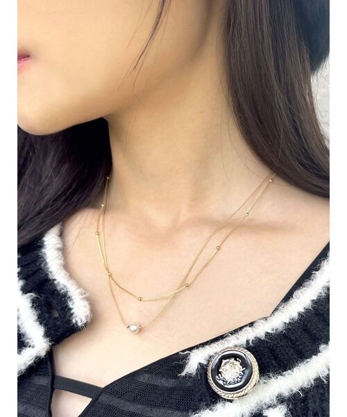 形の異なる2種類のチェーンを使用したトレンド感のあるデザイン。シンプルなコーデにプラスするだけで洒落感がでます。トップの重厚感たっぷりなパールが上品な印象になり、高見えするアイテムです。