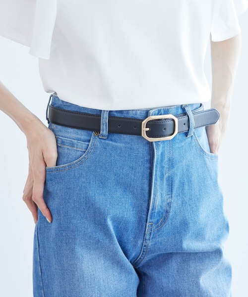 一本あると便利なベーシックレザー調ベルト。【デザイン・シルエット】・しっかりと幅を持たせた、ウエストマークに最適のレザー調ベルト。・メタリックなスクエア型バックルがアクセント。【カラー】・ブラック、ブラウンの2色展開。【スタイリングポイント】・オフィスでのきれいめなパンツルックにぴったり。※撮影時の光、お使いのモニター環境によって色の見え方が違う場合がございます。