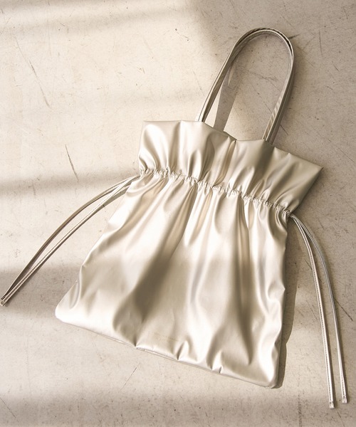 馴染みやすく存在感もアリ。軽くて持ち運びのしやすいトートバッグ。【素材感】 ・裏地は再生ポリエステルを使用した、サステナブルなアイテム。 ・ソフトな質感と軽やかさが魅力。 【デザイン・シルエット】 ・シャーリングデザインがポイントのトートバッグ。 ・メタリックカラーでモダンな印象をアピール。 【カラー】 ・ゴールド、シルバーの2色展開。 【スタイリングポイント】 ・きちんと感のある装いにも、カジュアルな着こなしにも合わせやすい。 ・メインとしても、サブバッグとしても活用できるアイテム。 ・柄物にも馴染みやすく、シンプルコーデのアクセントにもなる万能さ。 ----------------------------- ポケットの数:中1個、外0個 A4収納:可能 長財布収納:可能 ショルダー紐:なし ----------------------------- ※撮影時の光、お使いのモニター環境によって色の見え方が違う場合がございます。
