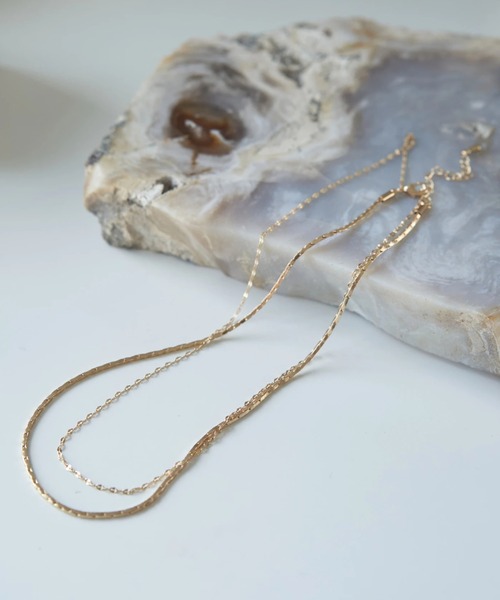 シェイプの異なるチェーンを組み合わせたミニマルデザインの2連ネックレス。 シンプルながらも重ねることでスタイリングに奥行き感をプラスしてくれます。 アジャスター付きでサイズ調整も可能。 お手持ちのネックレスやチョーカーと重ね付けしたりと、様々なスタイリングのアレンジが楽しめるアイテムです。 ●製品寸法: F:全長39cm/40cm+5cm 備考: