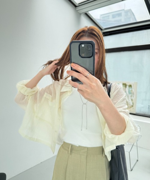 y/m立体感のある素材がお洒落なクロップドシャツ■デザイン透け感のある素材をワッシャー加工することで、立体感を出したデイリー使いにピッタリのクロップドシャツです。オーバーサイズな身幅に対しショート着丈のバランスがトレンドのデザインになっています。■コーディネートボトムはスラックスやIラインのタイトスカートと合わせるのもおすすめです。インナーの上からさらっと羽織る着こなしも◎【お買い物をよりお楽しみいただく為に】▼商品のお気に入り登録お気に入りアイテムの値下げ・再入荷・ラスト1点などの通知を受け取ることができます。▼ブランドのお気に入り登録新商品や再入荷、セール、クーポン配布などいち早くお得な情報を受け取ることができます。※撮影商品はサンプルの為、実際の仕様と異なる場合がございます。※画像の商品は光の照射や角度、お使いのモニター環境により、実物と色味が異なる場合がございます。品番:520HSY30-2341品名:シアーワッシャークロップドシャツ
