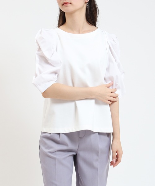 【洗練されたデザインが日常を華やかに彩る一枚】衿元はスッキリとシンプルながらもボリュームのある異素材使いの袖がポイントで、エレガントな女性らし雰囲気をプラス。柔らかく、なめらかな肌触りで、快適な着心地です。上品な光沢感を生むシルケット加工を施し、伸縮性のあるボンチ素材は身体にフィットしやすく、動きやすさが◎シワになりにくく、汚れが付きにくいのもポイント。シンプルなデザインで着まわし力の高いアイテムです。【TRUDEA(トルディア)】by Astoria(アストリア)毎日着るものだからこそ素材や着心地にこだわりを!洗練されたデザインに程よいトレンド感をMIXした働く女性のワードロープを提案します。ベーシックなデザインなので、通勤やオフィスでのお仕事スタイルおすすめです。また、就職活動やセレモニーなどオケージョンシーンにも◎ビジネスなどのオンスタイルや、コーディネートするアイテム次第で、きちんと感を出しながらオフィスカジュアルやオフスタイルにも◎◆《お気に入り登録》でお得な情報を◆・「商品のお気に入り登録」再入荷、ラスト1点、セール情報などの通知も受け取ることができます。・「ブランドのお気に入り登録」新商品や再入荷など、ブランドのお得な情報を受け取ることができます。