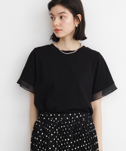 ■ポイント/詳細さりげない袖先のシアー素材がシンプルな中にトレンド感のある一枚です。華やかさもありサイズ感も、ゆったり過ぎないのできちんと感があるアイテムです。■素材/機能性UV、接触冷感、アンチピリング、マシンウォッシャブルできる素材です。■おすすめポイントシンプルでボトムを悩まない着回し力のある一枚です。※この製品は、太陽光線中の紫外線(UV)を通しにくくします。この効果は永久的ではありません。※照明の関係により、実際よりも色味が違って見える場合があります。また、パソコン・スマートフォンなどの環境により、若干製品と画像のカラーが異なる場合もございます。モデル情報:身長166cm B72 W62 H86 着用サイズ:12(M)店舗へのお問い合わせ商品番号:040-18526●製品寸法:12(M):着丈57cm B100cm 袖丈22cm 肩幅36cm13(L):着丈58cm B104cm 袖丈23cm 肩幅37cm備考: