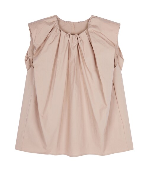 お花のつぼみをイメージしたデザインのシャツブラウスです。バルーン調に施したギャザーが立体感を演出し、袖口に入れた肩パットがシルエットをキープします。ハリのある綿素材で、夏でも快適に着用いただけます。※手洗い可能 JN79 5O4213820 ブラウス #丸首#クルーネック#ノースリーブ#ホワイト#ブラック#ピンク#ピンクベージュ