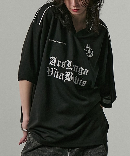 26SS NEW COLOR RELEASE ・ブラック系 ・グリーン系 ・レッド系 『honeycomb mesh big game shirt』 累計販売数1.5万着 / お気に入り数2.5万件 クラシックなサッカーシャツを再構築した、都会派ゲームシャツ。 ■デザイン オリジナルエンブレム刺繍とロゴを施した、アイコニックな一枚。 ロゴ部分をプリント、エンブレムとA文字を刺繍のハイブリッドにすることで、立体感のあるデザインに。 シャープなVネック仕様は顔まわりを引き締め、二本の配色パイピングがゲームシャツらしいスポーティなアクセントをプラス。 程よくルーズなドロップショルダーシルエットで、ジェンダーレスに着用可能。 メンズ・レディース問わずに着用いただけるユニセックスアイテムです。 ■素材 立体感のあるハニカムメッシュ素材を採用。 通気性と軽さに優れ、さらっとした快適な着心地です。 メッシュ特有の凹凸感が、シンプルながら表情のある仕上がりになっています。 ■スタイリング バギーデニムやワイドスラックスにタックインしたモードストリートや、 トラックパンツやテックパンツと合わせたスポーティなスタイルもおすすめ。 ダメージ感のあるクラッシュデニムとのグランジスタイルとも相性抜群。 ネックレスやボリュームのあるアクセサリーを合わせれば、スタイリングがぐっと引き締まります。 ーーーーーーーーーーー 透け感 :なし 厚さ :普通 伸縮性 :なし 裏地 :なし ポケット:なし ーーーーーーーーーーー 【Alfred Alex/アルフレッドアレックス】 性別や生い立ちに捉われない、ありのままの自分で着られる「Alfred Alex」 トレンドを掴みながらも着やすく、取り入れやすいファッションをベースに 細かなエッジを効かせたデザインが癖になる。 選ぶ人の「好き」と言う感覚を大切に、変わり続ける今に寄り添うファッションブランド。 【気になる商品はお気に入り登録がおすすめ】 ▼商品のお気に入り登録 完売カラーの再入荷、ラスト1点、セールの通知などお得な情報が受け取れます。 ▼ブランドのお気に入り登録 新商品や再入荷など、いち早くブランドのお得な情報を受け取ることができます。 ※ご覧のモニター環境や撮影環境の光の当たり具合で実際の商品と色味が異なって見える場合があります。
