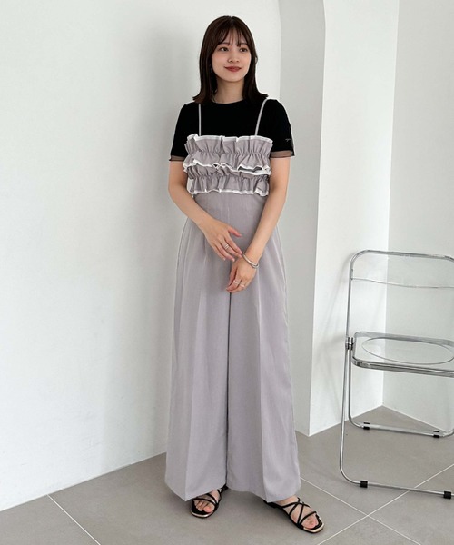■フリルがポイントに■フリルビスチェが特徴のジャンプスーツ。ビスチェとパンツそれぞれ着用可能なので着回し力抜群なアイテムです。ボトムスはゆとりのあるワイドなシルエット。さらっとした生地感なので汗ばむ季節でもさらっと着ていただけます。ビスチェは短め、パンツはハイウエストなのでスタイルアップが叶う。ジャンプスーツを大人っぽく綺麗に着こなすことが可能です。Tシャツ合わせでラフな着こなしがおすすめ♪ーーーーーーーーーーーーーーー透け感:なし裏地:あり伸縮性:あり光沢感:なし生地厚さ:普通洗濯方法:手洗い可※詳しいお手入れ方法は商品についているタグをご覧くださいーーーーーーーーーーーーーーー※ご利用のモニター環境により、実際の色味と多少異なる場合がございます。… information … 欲しいitemをお気に入り登録(♡マークをclick) ・お買いのがし対策…完売itemの再入荷やラスト1点の情報をお知らせ ・欲しいitemをお得にget…price downになったらいち早くお知らせ ・スムーズ検索…ZOZOのお気に入りアイテムページで簡単checkできるから、再検索不要♪