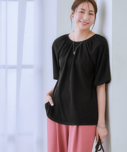 ◆夏のお悩み解決!即コーデ完成のカセット服でキレイとリラクシーを両立 ■デザイン ラグランスリーブにボリューム袖をデザインしたきれいめトップス ■素材 程よい肉厚のカットソー素材でストレッチ感があり着心地らくちん。 接触冷感素材なので夏中快適に過ごせます ■おすすめのスタイリング 同素材のパンツと合わせてカセット服としてコーデするのもきれいめでおすすめです。 シンプルなのでお持ちのアイテムと組み合わせてONからOFFまで着回し自由なアイテムです 【働く服改革】 働く女性の声に寄り添い、商品やコンテンツを通して 「働く服・働き方改革をサポートしたい」 「働く女性同士が気軽にコミュニケーションを図れる場を提供したい」 そんな想いでスタートしたブランドです。 <仕様> 【本体】ポリエステル100% 【袖裏地】ポリエステル100%(織物) <洗濯方法> 洗濯機OK ネット使用 ■キーワード シャツ、トップス、ファッション、ブラウス、レディース、夏、ビジカジ、オフィスカジュアル、レディス、アパレル、お仕事、通勤、テレワーク、入学、卒業、学校行事、懇親会、顔合わせ
