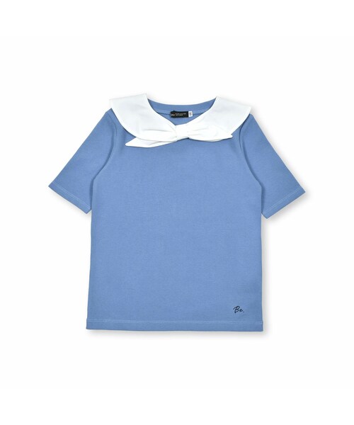 セーラー風の付け襟がセットになった半袖Tシャツ。 身生地には伸縮がよくすっきりとしたシルエットで着られるテレコ素材を使用。 少し長めの袖丈がカジュアルになりすぎず品良く見せてくれます。 やわらかく体形にフィットしてくれるのでインナー使いにもぴったり◎ 付け襟は前のループに通してリボン型にするデザイン。 お手持ちのトップスと合わせて使うことも可能です♪ 青空のようなさわやかなブルーで夏のお出かけを涼し気な雰囲気で楽しめます。 【BeBe(べべ)】 ”LOVE MODERN” 少しおませで、生意気なヨーロピアンカジュアルの提案。 時代性・流行性をとらえ、ベーシックでもワンポイントを施した遊び心、楽しさを盛り込んでいます。 シンプルだけど、こだわりのあるオリジナリティーを重視しています。