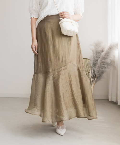 ◆staff着用コメント◆ LLを着てちょうどいいサイズでした。マーメイドシルエットに近いデザインで、斜めに切り替わった裾がフレアになっています。後ゴムで、いつも通りのサイズ選びで問題なさそうです◎ヒップなど、ぴたっとするようなシルエットではないのでらくちんな着心地でした。シアー素材が可愛くて、女性らしいです!オールシーズン使えそうなので、トップス次第で色々な着こなしに変化できそう! ◆サイズ(LL/3L/4L)◆ ウエスト 78~104/84~110/90~116 ◆生地について◆ 伸縮性:なし 透け感:なし 裏地:あり ◆洗濯表示◆ 液温は40 ℃を限度とし、手洗いができる 塩素系及び酸素系漂白剤の使用禁止 タンブル乾燥はできない 日陰のつり干しがよい 底面温度110 ℃を限度としてスチームなしでアイロン仕上げができる 石油系溶剤による弱いドライクリーニングができる 非常に弱い操作のウエットクリーニングができる ◇◇◇ CLETTEについて ◇◇◇ ぽっちゃり体型、大きいサイズの方が『この服でいいや』ではなく『この服が可愛い』『この服を着たい』と思ってもらえるようなアイテムをお届けしています。 CLETTEだけでしか購入できないオリジナル商品を是非一度手に取ってみてください◎