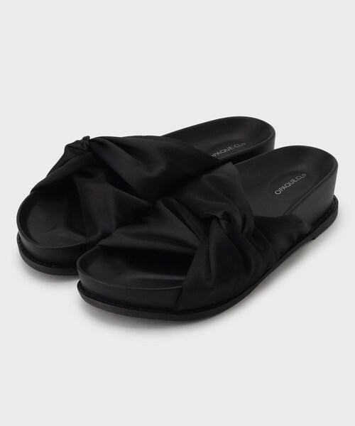 ツイストデザインが新鮮!モードな印象のフットベッドサンダル・アッパー部分はサテン地を使用・ヒール高は45mmで歩きやすさとスタイルアップを両立・カジュアルになり過ぎずどこかモードな雰囲気のあるデザイン【デザイン】アッパーにサテン素材を使用したトレンド感のあるツイストデザインのフットベッドサンダル。サテン素材を使用することで、カジュアルになあり過ぎずどこかモードな雰囲気のあるデザインに仕上げました。ヒール高は45mmで、スタイルアップが叶うだけでなく、フットベッドソールなので安定感があり歩きやすいのもポイントです。ワイドパンツと合わせてリラクシーな雰囲気のスタイリングに仕上げるのがおすすめです。※照明の関係により、実際よりも色味が違って見える場合があります。また、パソコン・スマートフォンなどの環境により、若干製品と画像のカラーが異なる場合もございます。店舗へのお問い合わせ商品番号:C71-28013●製品寸法:02(23.5~24.0cm):ヒール高4.5cm 幅10cm プラットフォーム3.5cm03(24.0~24.5cm):ヒール高4.5cm 幅10.5cm プラットフォーム3.5cm備考:重量:03(23~23.5cm)片足約260g