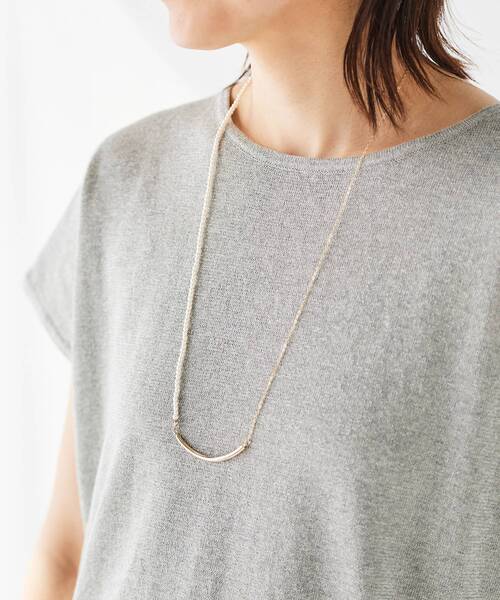 3種類の素材を合わせた華奢なラインが女性らしいネックレス。ロングチェーンですっきりとした印象を与え、程よい華やかさをプラス。ゴールドとパールの組み合わせが上品で、オンオフ問わず使えるアイテムです。