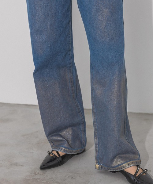 ページボーイ定番のクラシックジーンズにトレンドの箔加工を施したアイテムがリニューアル!ギラギラし過ぎないシャイニーな光沢感がこれからの季節にピッタリ!トレンドを程よく取り入れたモードな印象に。スタイルアップ効果もある履きこみの深いハイウエストシルエットはそのままに、程よいゆとりをもたせた少しルーズなシルエットに仕上げました。リラックスムードにぴったりなカジュアルさと抜け感が漂う1本です。スタイリングの主役になるアイテムです。〈注意事項〉・サンプルにて撮影をしておりますので、実際の商品とは素材や仕様・加工・サイズ等が若干異なる場合がございます。・モニター・環境等により実際の商品と色味が多少異なって表示される場合がございます。予めご了承をお願いいたします。・撮影環境により、光の当たり具合で色味が違って見える場合があります。あらかじめご了承下さい。▼気になるアイテムは《お気に入り登録》がおすすめです!完売カラーの再入荷情報、セール情報、ラスト1点の通知を受け取ることができます!▼《ブランドのお気に入り登録》で新商品や再入荷などのお得な情報をいち早くお知らせします。