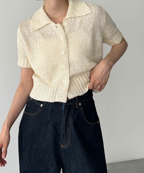 デザイン 襟付きデザインでカジュアルすぎず大人かわいい印象に。 袖口と裾の幅広なリブデザインも目を惹くポイントです。 素材 ビスコース素材の滑らかでさらりとした肌触りで着心地も◎ コーディネート 短めの丈感なのでどんなボトムともバランスが取りやすく、デニムから綺麗めなボトムまで幅広いスタイリングに合わせていただけます。 El mar(エルマール) El mar はスペイン語で『海』 海に向かうときはだれでもワクワクする。 洋服を選ぶとき、袖を通すとき、 同じように心が踊るアイテムを提案したい。 そんな『ワクワク』な気持ちを込めて El mar はデビューしました。 ------------------------------------- 生地の厚さ:厚い〇〇〇●〇薄い 伸縮性:あり 透け感:ややあり 裏地:なし 光沢:なし ------------------------------------- 【ニットのお手入れ方法について】 ニットの風合いを損なわず、きれいに保ち続けるためには日頃のケアが必要です。 1日着用して湿気がこもったニットは、風通し良い場所に干し湿気を取り2-3日お休みさせてください。 型崩れさせないようにするために畳んで保管するのがおすすめです。 ハンガーで保管の場合は、肩線が崩れないように厚みのあるハンガーや木製ハンガーをご使用ください。 【毛玉のケア方法】 毛玉取り器を使い、優しく回しながら取り除いてください。 毛玉が大きいものや毛足の長いものは、毛玉をつまみハサミでカットするのがおすすめです。 ※取り扱い及びお手入れ方法については、商品について取扱表示、洗濯表示にてご確認下さい。 ※照明の関係により、実際よりも色味が違って見える場合があります。またパソコン・スマートフォンなどの環境により、若干製品と画像のカラーが異なる場合もございます。 ※商品の色味は、商品アップ画像をご参照ください。