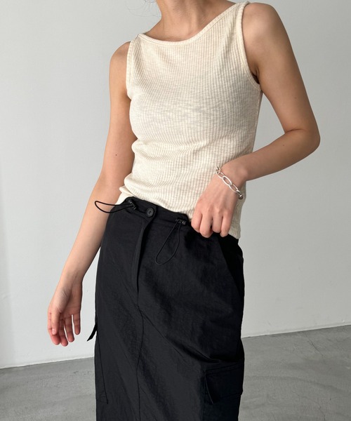 デザイン首元のボートネックデザインが顔周りをすっきり見せてくれます。デイリー使いできるタンクトップは色や形違いで何枚持っていても便利なアイテムです。素材リブ素材で伸縮性があり、ストレスフリーな着心地。コーディネートインナーとしてはもちろん、夏には1枚で着るとヘルシーな着こなしに。シンプルなデザインで様々なコーディネートに活躍してくれます。El mar(エルマール)El mar はスペイン語で『海』海に向かうときはだれでもワクワクする。洋服を選ぶとき、袖を通すとき、同じように心が踊るアイテムを提案したい。そんな『ワクワク』な気持ちを込めて El mar はデビューしました。-------------------------------------生地の厚さ:厚い〇〇〇●〇薄い伸縮性:あり透け感:WHT,CRMややあり裏地:なし光沢:なし-------------------------------------取扱い:手洗い濃色は色落ちする可能性がありますので、他の物とのお洗濯はお避けください。蛍光増白剤の入っていない洗剤をご使用ください。長時間の水への浸漬はお避けください。洗濯後は速やかに形を整えて陰干しをしてください。水洗いの後の乾燥機のご使用はお避けください。この商品は素材の特性上、ピリング(毛玉)が出る場合がございます。クリーニングネットを使用してください。アイロン掛けの際は、あて布をご使用ください。※取り扱い及びお手入れ方法については、商品についている取扱表示、洗濯表示にてご確認下さい。※照明の関係により、実際よりも色味が違って見える場合があります。またパソコン・スマートフォンなどの環境により、若干製品と画像のカラーが異なる場合もございます。※商品の色味は、商品アップ画像をご参照ください。