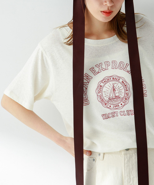 シンプルになりがちな夏の装いのポイントに麻混の素材を使用したグラフィックTシャツ。架空のヨットクラブのお土産Tシャツをイメージし、オリジナルの柄を作成しました。刺繍なのでプリントよりも繊細な雰囲気で、大人も着やすい一着です。使いやすいベーシックなサイズ感で、合わせるボトムスを選びません◎POINT・ご自宅で手洗い可能・豊富なカラー展開COORDINATEボリュームのあるパンツにタックインした、大人カジュアルな着こなしがおすすめです◎【2024 Spring/Summer】【24SS】※この商品は、麻素材を使用しています。ネップ(部分的に太くなっている)やスラブ(太さにムラがある)などの糸ムラは、麻の素朴さを生かしたものになります。※素材の特性上、シワになりやすいのでご注意ください。※商品画像は、光の当たり具合やパソコンなどの閲覧環境により、実際の色味と異なって見える場合がございます。予めご了承ください。※商品の色味の目安は、商品単体の画像をご参照ください。▼お気に入り登録のおすすめ▼お気に入り登録商品は、マイページにて現在の価格情報や在庫状況の確認が可能です。お買い物リストの管理に是非ご利用下さい。素材感透け感 : ややあり(オフのみ)伸縮性 : あり裏地 : なし光沢 : なしポケット : なし