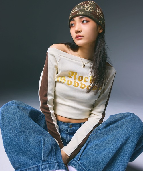 今季の主役級トップス○ コンパクトなオフショルダートップス レディライクなオフショルダーシルエットの長袖トップス。 ウエストをシェイプさせたシルエットなのでスタイルアップも◎ タイトでありながらストレッチ性のあるフライス素材で、着心地快適。 光沢感のあるプリントがトレンドライクな印象に。 袖の配色ラインもポイント。 プリントの 「Rock Goddes」は 「ロックの女神」を意味し、X-girl創設者のキムゴードンの当時の呼称であり、90年代のガーリーカルチャーの象徴的存在だった意味合いを込めています。 ■ポイント ・トレンドライクに着こなせるショート丈のオフショルトップス ・ストレッチ性のあるフライス素材 ■コーディネート トラックパンツやデニムスカートに合わせたスタイリングがおすすめ。 ストリートスタイルやy2Kコーデの主役アイテムとして大活躍します。 ・透け感:ややあり ・伸縮性:あり ・生地の厚さ:普通 ・裏地:なし ・シルエット:タイト ※オフホワイトで計しています。 ■取り扱い注意事項 ・プリント部分は永久的なものではなく、長期間の使用・摩擦により、徐々に剥がれや欠損が生じます。 ・アテンションタグ・洗濯表示を必ずご確認の上、ご使用下さい。 ※画像の商品は光の照射や角度により、実物と色味が異なる場合がございます。また表示のサイズ感と実物は若干異なる場合もございますので、予めご了承ください。 ※画像の商品はサンプルとなります。実際の商品と色味、仕様、加工、サイズ、素材等が若干異なる場合がございます。 ※生産の過程で、素材やサイズなどに若干の変更が出る可能性があります。 ※予約商品など一部商品につきましては、生産の都合上、お届け時期が前後する場合がございます。 ■X-girl(エックスガール) ▼商品のお気に入り登録 残り1点や再入荷、セールなどの通知を受け取ることができます。 ▼ブランドのお気に入り登録 新作アイテムや再入荷、クーポンなどお得な情報をいち早く受け取ることができます。