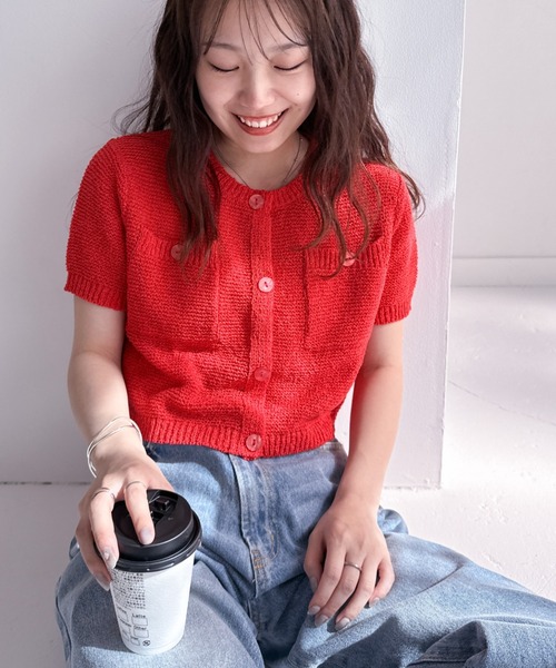 フレンチシックなポケット付きカーディガン ノーカラーに控えめなパフスリーブが上品な印象のカーディガン。 ポケットと同色の釦がポイントになるので、シンプルコーデにも相性良く合わせられます。 コンパクトなサイズ感なので、パンツからスカートまで幅広いコーディネートを楽しんで頂けます。 ループヤーンと呼ばれる表面感のある素材を使用することで女性らしい柔らかな雰囲気を演出してくれます。 DETAIL 着回し力:★★★★☆ 厚み:★★★☆☆ 伸縮性:★★★★☆ SEASON 春・夏 ・照明や天候、閲覧環境によって実際の色味と異なって見える場合がございます。予めご了承ください。 … information … 欲しいitemをお気に入り登録(♡マークをclick) ・お買いのがし対策…完売itemの再入荷やラスト1点の情報をお知らせ ・欲しいitemをお得にget…price downになったらいち早くお知らせ ・スムーズ検索…ZOZOのお気に入りアイテムページで簡単checkできるから、再検索不要♪
