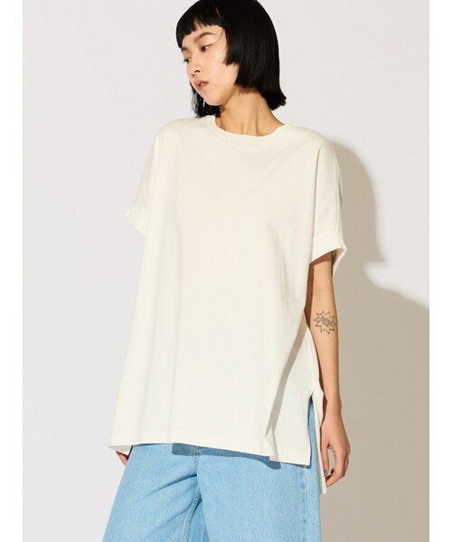 MIDIUMISOLID実績のあるワイドチュニックプルオーバーが新色を追加し新登場。チュニック丈の長めのシルエットでゆったりとラフに着用していただけます。色々なデザインのボトムとよく合います。裾は前後差を付けたサイドスリット入り。袖口にスリットを入れた通気性の良いデザインで袖口のフィット感を解消したのもポイントです。シンプルで着回しアイテムとしておすすめの1枚です。 Point 袖丈:半そで デザイン:無地 ネック:クルーネック Detail 裏地:なし 透け感:多少あり(オフホワイトのみ) 伸縮性:あり 光沢感:なし ポケット:なし ※商品画像は、光の当たり具合やパソコンなどの閲覧環境により、実際の色味と異なって見える場合がございます。予めご了承ください。 ※商品の色味の目安は、商品単体の画像をご参照ください。 こちらの商品 は MARcourt DESIGNEYE にてお取り扱いしております。 店舗在庫等については直接店舗にお問い合わせください。