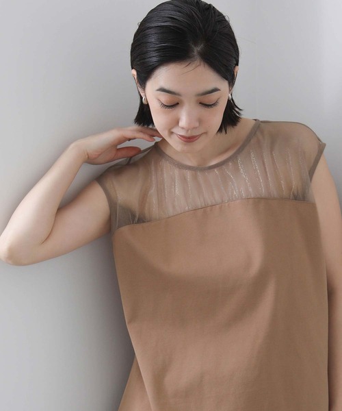 箔プリントが施されたチュール素材を切り替えた今季らしいドッキングカットプルオーバー。 シアートップスにビスチェをレイヤードしたように見える優れもの。 一枚で着ても着映えするよう身頃のカットはきれいに見えるシルケットカットソーを使用。 キャミワンピースやジャンパースカートにあわせてインナーとしてもコーディネートのポイントになる一枚です。 【 お買い物をもっと楽しんでいただく為に 】 ▼商品のお気に入り登録▼ 完売カラーの再入荷や、ラスト1点、セールの通知をお知らせします。 割引クーポンの発行などお得な情報も! ▼ブランドのお気に入り登録▼ 新商品や再入荷など、いち早くグレディブリリアンのお得な情報を受け取ることができます! 【Gready Brilliant】 「ほどよい存在感」を大切にする大人の女性のためのセレクトショップ。