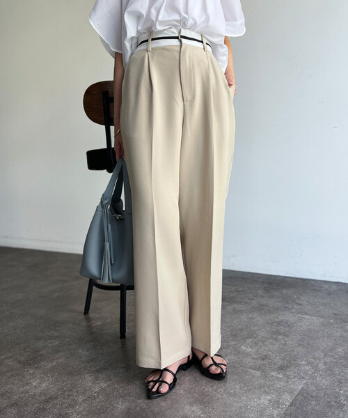 足長効果と着痩せが叶う美脚ワイドパンツ■pointウエストのバイカラーの配色がコーデのアクセントになるパンツ。ボディーラインを拾わないストンと落ちるシルエットが脚長効果抜群!太めのベルトが気になるウエスト部分をカバーしスタイルアップ効果も◎ちょうどいい生地感で1年中着まわせて様々なシーンで活躍するアイテムです。■coordinateシンプルなTシャツなどをインして着ていただくだけでもオシャレに決まります。合わせるアイテム次第できれい目にもカジュアルにもお使いいただけます。■fabric 本体:ポリエステル97%ポリウレタン3% 別布:ポリエステル80%綿20% --------------------------------------------------裏地:なし光沢感:なし伸縮性:なし生地の厚さ:普通洗濯方法:手洗い可 アイロン低温--------------------------------------------------※商品画像は製品前サンプルにより着用イメージです。光や角度により、実物と色味が異なる場合がございます。また表示のサイズ感も実物とは若干異なる場合もございますので、ご了承ください。※着用、お取り扱いの際は、商品についている品質表示とアテンションタグを必ずご確認ください。--------------------------------------------------♡をクリックでお得な情報をお知らせいたします。<商品お気に入り登録>お気に入りアイテムのお値下げ・再入荷・在庫ラスト1点など通知を受けることができます。<ブランドお気に入り登録>Chez toiの新商品・再入荷・SALE・クーポン配布などお得な情報を受けることができます。--------------------------------------------------Cheztoi/シェトワフランス語で「あなたの家」という意味。自分にまっすぐでそしてしなやかに生きる女性に向けたブランドです。