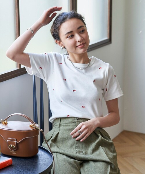 2024 Spring & Summer item インナーにも一枚でも使える! ミニ刺繍が可愛らしいリブTシャツ ●小さなリボン刺繍を散りばめたキュートなTシャツ ●やや厚手のリブ生地を使用し透けにくく、肌触りの良さも魅力◎ ●刺繍なのでプリントアイテムより高見えするのもうれしい ●サイズ感はコンパクトめなフィットするシルエットです ●インナーとしてはもちろん、一枚でも活躍します おすすめのコーディネート 一枚ではもちろん、ジャケットのインナーやオーバーオールやビスチェのインナーにと、とにかく使い勝手の良いTシャツ。 パンツスタイルでもスカートでも、幅広いボトムを合わせていただけます。 レザーアイテムやミリタリーアイテムなどあえてメンズライクなアイテムと合わせて甘辛ミックスもおすすめです。 リラクシーながら見た目も可愛い、部屋着からお出かけまで活躍する持っておくと便利なアイテムです。 --------------------------------------------------------お気に入り登録のオススメ ▼商品のお気に入り登録▼ 再入荷、残り1点、セールなどの通知を受け取ることができます。 ▼ブランドのお気に入り登録▼ 新商品や再入荷、ショップのおすすめトピックスなど、いち早くブランドの情報を受け取ることができます。 -------------------------------------------------------- ※こちらの商品は、弊社管理上のカラーを表記しております為、タグのカラー表記と異なる記載となっております。 【サイト表記:タグ表記】 ・オフホワイト:OFF ・ブラック:BLK ・キャメル:BEG ※掲載画像の商品の色味は、屋外や屋内の光の照射や角度により実物と色味が異なる場合がざいます。また表示のサイズ感と実物は若干異なる場合もございますので、予めご了承ください。 ※着用、お取り扱いの際は、商品についている品質表示とアテンションタグを必ずご確認下さい。 【FREAK'S STORE/フリークスストア】 「アメリカの豊かさとワクワク・ドキドキを日本に伝えたい」という想いからスタート。1986年の創業以来、洋服、雑貨、インテリアなど自分たちが本気でカッコ良いと思うものをセレクト。積極的に楽しむ生活体験者=フリークとして、アメリカンライフスタイルの楽しみ方を提案するセレクトショップです。