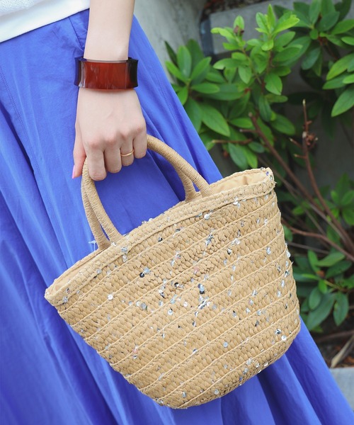 甘すぎない、大人のカゴバッグ■デザインシーズンムード高まる、涼しげなかごバッグが登場。全体にキラキラとしたグリッターデザインが施され、抜け感のある軽やかなカラーリングもポイントです。主張しすぎないシンプルなデザインで、普段使いはもちろん浴衣に合わせたりなど、幅広いシーンでご愛用いただけるアイテムです。■ディテール内ポケットが1つあります。■サイズメイクポーチやミニウォレット、ドリンクなども入る、日常使いしやすいサイズ感。※屋外撮影による光の当たり具合やパソコンなどの閲覧環境によって、実際の色味と異なって見える場合がございます。予めご了承ください。※商品の色味は商品単体で撮影した画像をご参照ください