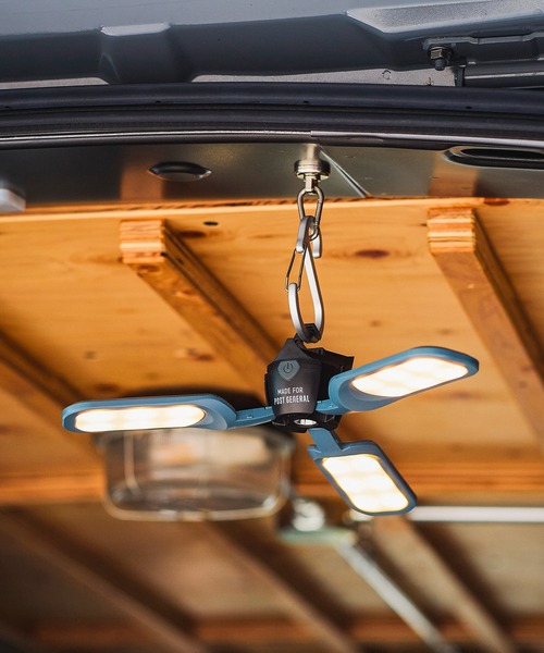 POSTGENERAL TRI-PANEL SOLAR CHARGED LED LIGHT (ポストジェネラル トリ パネル ソーラーチャージド エルイーディーライト) 3枚のLEDパネルを広げるとソーラー充電が可能なLEDライト。 吊り下げ・置き・もってと3通りの使い方は様々なシーンで活躍します。 マグネット内蔵のため壁面に設置し使用可能。 普段はUSB充電機能で使用し停電などの非常時はソーラー充電することで防災ライトとしても使えます。 3枚のメーンLEDパネルは約300ルーメンで約3時間連続点灯可能。 約100ルーメンの省エネモードでは約5時間連続点灯可能。 ■サイズ:W60×D60×H150mm ■素材:ABSポリカーボネート ■原産国:中国 【ご購入の前にご確認ください】 ※お客様のモニターの設定や閲覧環境(OSやブラウザのバージョン)によって、画面上と商品実物との色味が若干異なる場合があります。あらかじめご了承ください。