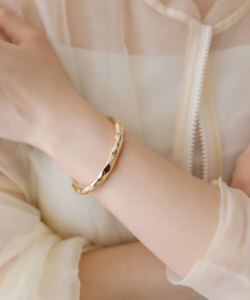 程よいボリュームで使い勝手の良いバングル 凹凸のあるフォルムが特徴のツチメ加工を施したメタルバングル。 ツチメ加工を施すことで光が乱反射し、艶やか過ぎない柔らかい表情に。 太すぎず細すぎない程よい幅広さで、コーディネートに合わせやすいのもポイント。 単体付けでもお洒落に決まりますし、重ね付けしても派手になりすぎない使い勝手の良さも◎ ■ポイント ・ツチメ加工の凹凸で艶やか過ぎない柔らかい表情に ・単体付けでもお洒落に決まる&複数付けもしやすいサイズ感 ・太すぎず細すぎない程よい幅広さ ■サイズ追記 着脱幅:2.8㎝ 《お気に入り登録》でお得な情報がいっぱい! ・「商品のお気に入り登録」で入荷情報や、ラストの通知、セール・クーポンの通知などを受け取ることができます! ・「ブランドのお気に入り登録」で新商品や再入荷など、お得な情報を受け取ることができます!