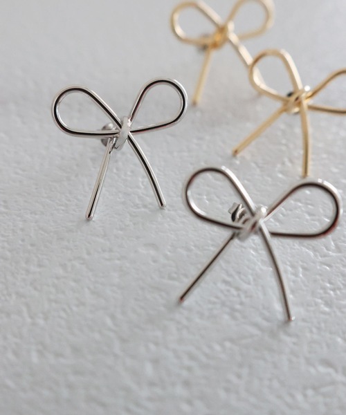 華奢なリボンモチーフのピアス。 シンプルなデザインで、上品にもカジュアルにもお使いいただけるアイテムです。
