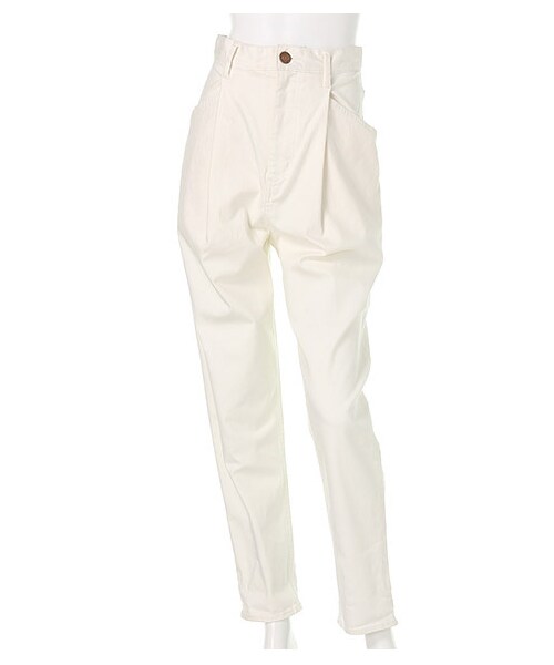 ジャストウエストのデザインでスタイルアップを叶えるモダンなデニムパンツ。サイドポケットの張り出たジョッパーズ風のサルエルシルエットとフロントタックが、こなれスタイリッシュな着こなしへと導きます。裾はロールアップして丈感をアレンジしても◎バックウエストのV字切替で、後ろ姿にもメリハリをプラス。ストレッチコットンなので快適にオールシーズン愛用できます!