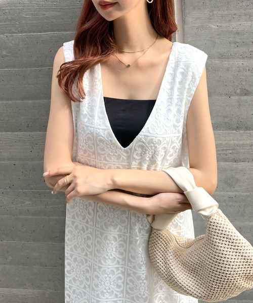 ★フューティアランドオリジナル商品★大人気のブロックレース前後2wayサロペットからワンピースバージョンが新登場! 前後2wayで着れてカジュアルすぎずきれいめ過ぎないレース地で、中に着るインナーによって雰囲気を変えられるアイテム。生地は透かし編みのように透け感はありますが、膝下まで裏地付きなのでインナーを気にせずに1枚で着用いただけるロングワンピースです。また、ロング・マキシ丈のIラインシルエットで、こなれ感を出しつつ華奢見え効果抜群◎1枚で着るのはもちろん、Tシャツやシャツをレイヤードすることで気になる二の腕回りもカバーできておすすめです! ★サイズ:着丈115cm, 肩幅39cm, バスト90cm, 裾幅67cm ★生地:薄手の涼しげなレース素材 ★伸縮性:なし ★透け感:ホワイトのみ若干あり ★裏地:あり ▼商品の色は物撮りをご参照ください。 ※モデル着用写真は外光の強い元で撮影しているので実際の色よりも明るく写っております。 ※掲載画像につきましては、撮影環境やお客様の閲覧されますパソコンや携帯電話キャリアによって、実際の商品とは多少異なったお色に見える場合も御座いますので予めご了承下さいませ。モデル着用画像はサンプルのため、色味やサイズ等の仕様に多少の変更がある場合がございます。 ----------------------INFORMATION---------------------- ▼公式instagram&TikTok《 @futierland_official 》 お得情報や、新作紹介、おすすめコーデなど様々なコンテンツを毎日更新中!是非チェックしてみてください☆彡 ▼商品のお気に入り登録 お気に入りの商品やサイズ・カラーまで、お気に入りの登録をしていただきますと、そのアイテムのセールの通知、ラスト1点になった時の通知や、完売しても再入荷通知を受け取ることができます! ▼ブランドのお気に入り登録 新商品の発売や再入荷、タイムセールやクーポン発行のお知らせなど、Futier landがお届けするお得な情報を受け取ることができます! ※通知はアプリでも受け取ることができますので、是非アプリの通知設定をお願い致します! ------------------------------------------------------------
